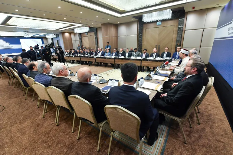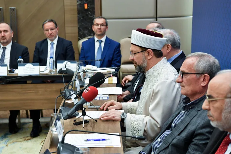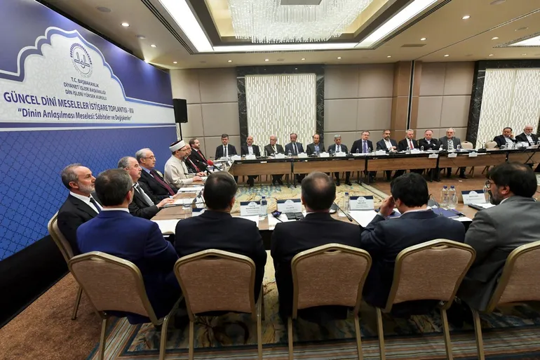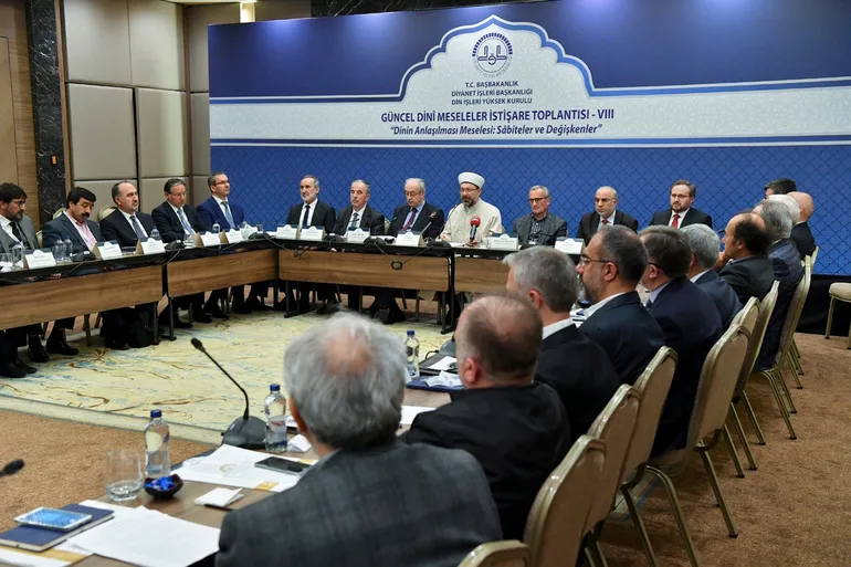Diyanet İşleri Başkanı Prof. Dr. Ali Erbaş, Din İşleri Yüksek Kurulunun "Dinin Anlaşılması Meselesi: Sabiteler ve Değişkenler" başlığıyla Beyoğlu'nda bir otelde dün ve bu gün düzenlediği "8. Güncel Dini Meseleler İstişare Toplantısı'nın sonuç bilgesini okudu. Erbaş, "İslam'ın, hayatın bütününü inanç, ibadet, amel ve ahlak açısından yönlendiren, ilim ve hikmetle aydınlatan ilahi bir inayet ve rahmettir" dedi.