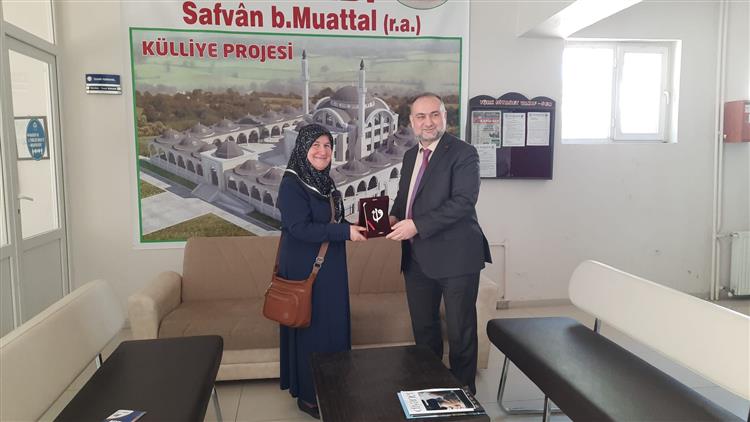 İl Müftüsü Mehmet Taşçı tarafından Abdullah Bin Ümmü Mektum Görme Engelliler Kur'an kursu manevi annesi Nesrin Kılınç'a Plaket.