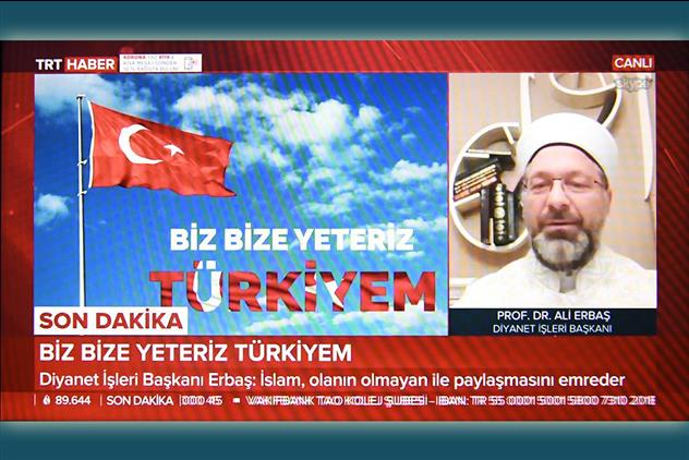 Diyanet İşleri Başkanı Prof. Dr. Ali Erbaş, TRT Haber’in özel yayınında, Cumhurbaşkanı Recep Tayyip Erdoğan’ın öncülüğünde başlatılan "Biz Bize Yeteriz Türkiyem" Milli Dayanışma Kampanyası'na desteklerini açıkladı.