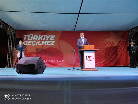 Muş İl Müftüsü Lütfü İMAMOĞLU, Belediye meydanındaki 15 Temmuz Demokrasi ve Milli Birlik Günü mitingine katıldı. Günün anlam ve önemini ifade eden konuşmaların ardından Tuba Camii Müezzi Keyyım'ı Muhammet Fecri YILDIRIM ve Tandoğan Köyü Şeker Fabrikası Cami İmam Hatibi Cemalettin AKDAŞ ikili sela okudular. Miting Muş İl Müftüsü Lütfü İMAMOĞLU'nun yapmış olduğu dua ile sona erdi.