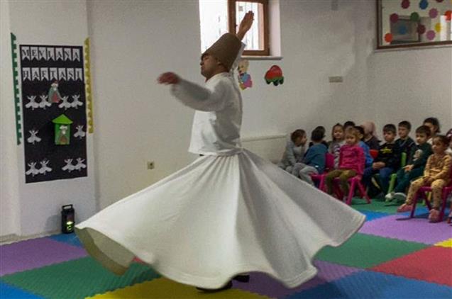 Mevlevi ayinlerinde Mevleviler’in kendinden geçerek ve sadece ilahi aşkı düşünerek dönmesinden oluşan Semazen gösterisi minik öğrenciler tarafından beğeni ile izlendi.